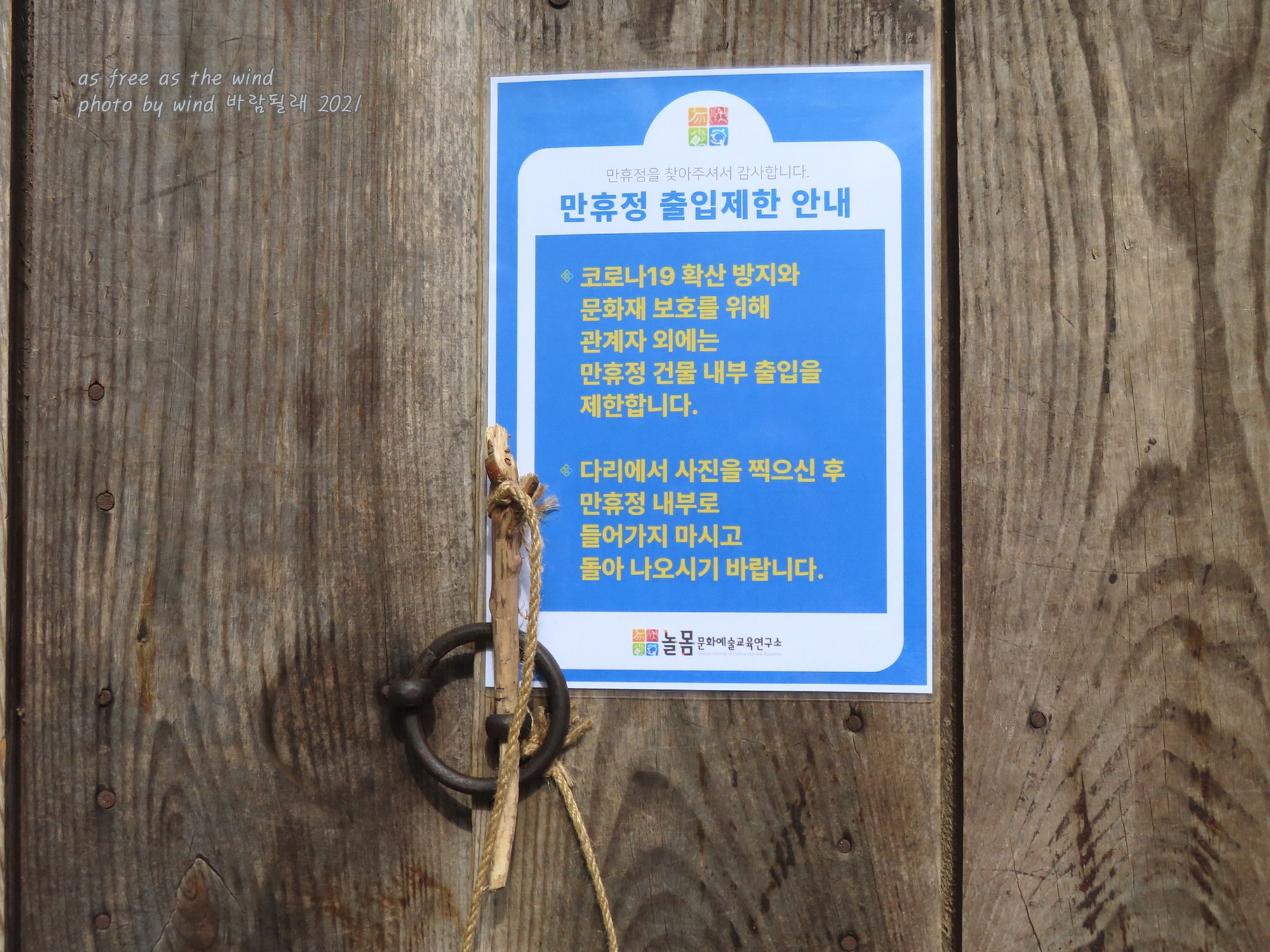 문화재 보호 차원도 있지만 그놈의 코로나는 어딜가나 맥빠지게 한다..